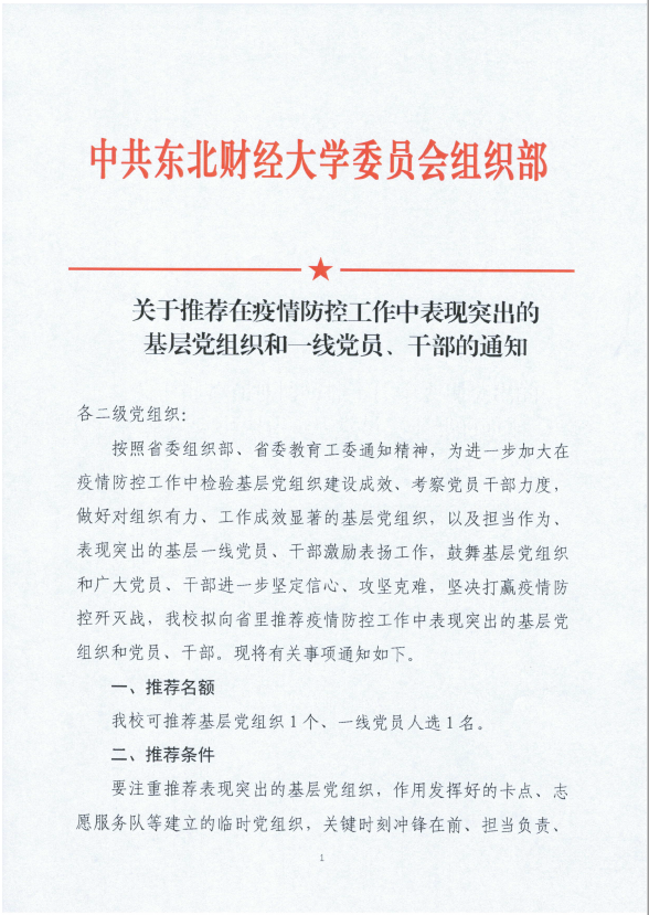关于推荐在疫情防控工作中表现突出的基层党组织和一线党员、干部的通知