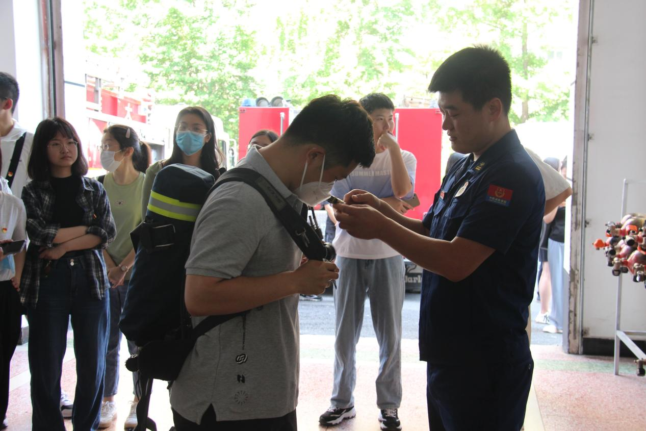 In order to enhance fire safety awareness of teachers and students, better popularize the knowledge of self-rescue and improve fire escape ability, on June 18, 2023, the 22nd National “Safety Production Month”, teachers and students of the School of Accounting of Dongbei University of Finance and Economics went to Taiyuan Street Fire and Rescue Station in Shahekou District to carry out a visit and practice activity of “carrying forward the heroic spirit, popularizing firefighting knowledge”. Eighty people participated in the activity, including Haodong Wang, the instructor of Taiyuan Street Fire Rescue Station in Shahekou District, Bo Li and Jun Liu, the deputy directors of Dongbei University of Finance and Economics Security Office, Xiaofang Dong, the deputy secretary of the Party General Branch of the School of Accounting, Wei Xiong, the chairman of Labor Union of the School of Accounting, and representatives of the Security Office, administrators of the School of Accounting and student Party members and League members.